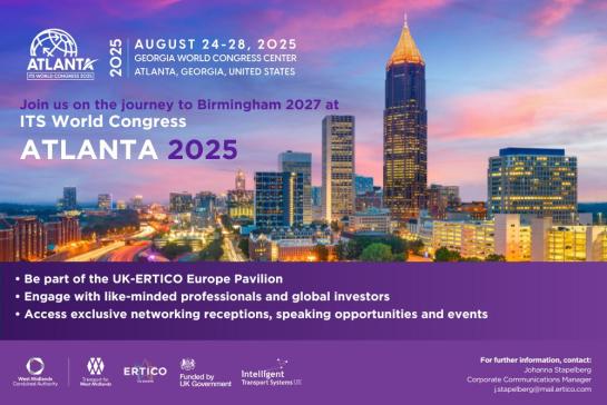 In collaboration with the host of the next EMEA ITS World Congress in Birmingham 2027, ERTICO invites its Partners and European-based mobility innovators to showcase their latest solutions at the joint stand, ‘Europe Pavilion’ in Atlanta. As part of this strategic presence, exhibitors will benefit from high-impact visibility, access to exclusive networking receptions, speaking opportunities, and engagement with global industry leaders and public decision makers. This joint stand also presents a unique platform to foster transatlantic partnerships, promote innovation, and build momentum on the road to Birmingham 2027.