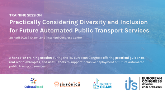 On Tuesday, 28 April, from 10:30 – 12:45, ERTICO, in collaboration with Bax Innovation and Unimore, will host an interactive, hands-on training session on “Diversity and Inclusion for Future Automated Public Transport Services.” This event, supported by the EU-funded projects CulturalRoad, Diversify-CCAM, and SINFONICA, will focus on bridging the critical gap between cutting-edge technology and real human needs. Spaces are limited for eligible Congress attendees.