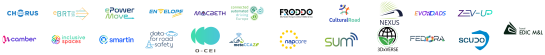 3DXVERSE, CAMBER, CCAMbassador, CHORUS, CulturalRoad, DFRS, eBRT2030, ENVELOPE, ePowerMove, EvoRoads, FEDORA, FRODDO, InclusiveSpaces, MACBETH, metaCCAZE, boostEDIC M&L, NAPCORE, NEXUS, O-CEI, SCUDO, SMARTIN, SUM, TN-ITS, and ZEV-UP.