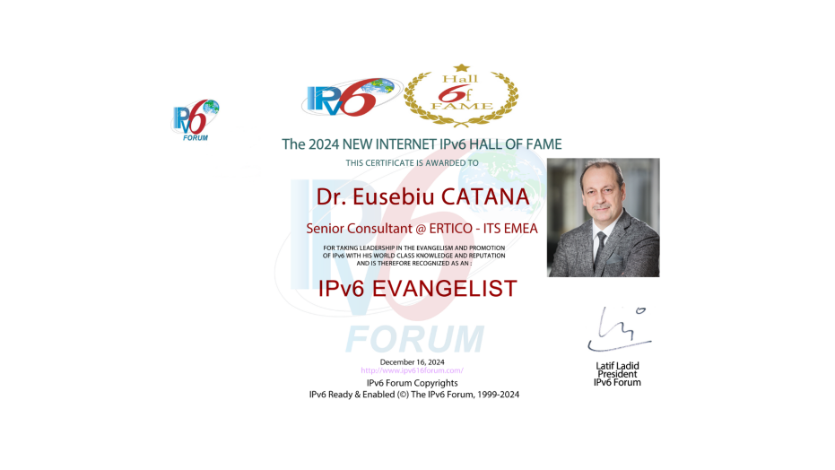 Dr Catana, Head of Transport for Logistics at ERTICO receives the 2024 IPv6 Hall of Fame