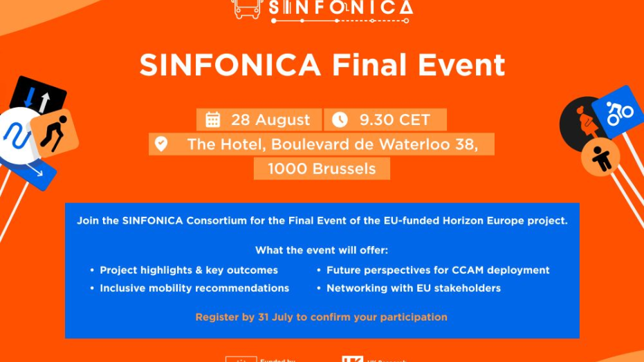 After three years, the SINFONICA project, an EU-funded project under the CCAM Partnership, reaches its conclusion. The project will host its Final Event in Brussels on 28 August 2025 at The Hotel (Boulevard de Waterloo 38, 1000 Brussels).