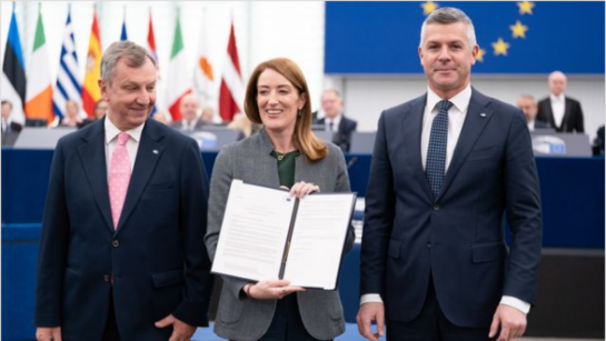 Image source: EP President Roberta Metsola signed the 2026 EU budget into law, following its adoption in the Strasbourg hemicycle © European Union, 2025
