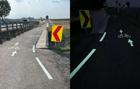 A first in Austria’s federal state of Burgenland: SWARCO applied specially developed markings that glow in the dark to a cycle path along the country road B62.