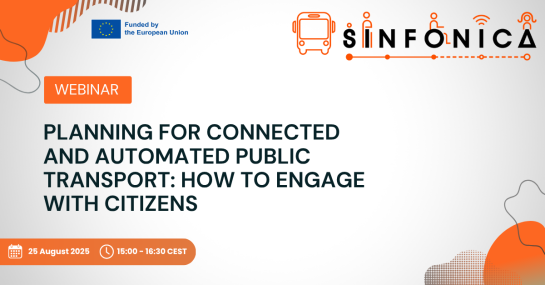 The SINFONICA project is hosting its second capacity-building webinar on 25 August 2025 from 15:00 to 16:30 CEST, focusing on how citizen engagement can support the inclusive and effective planning of Connected and Automated Mobility (CCAM) in public transport.