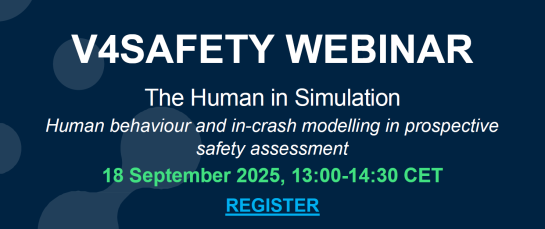 This webinar will provide an overview of behavioural and in-crash model types used in V4SAFETY. Associated recommendations will be presented, regarding the selection, development, validation and use of behaviour models, and virtual representations of crash test dummies and human body models suited for each user’s evaluation scope.